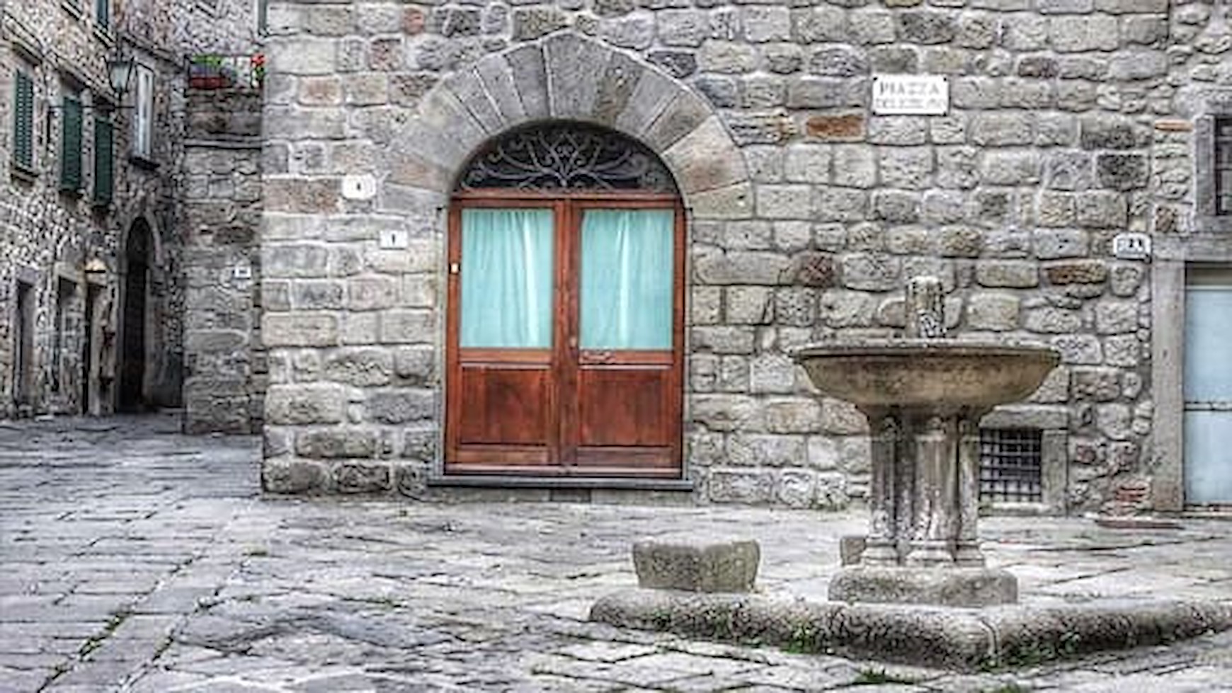Secondo una ricostruzione su base archeologica, la casa al civico 1 di questa piazza potrebbe essere stata la sede del Comune medievale di Santa Fiora. All’epoca aveva, oltre al portale ancora in uso, un ingresso al primo piano sul lato destro, servito da una scala esterna. Successivamente, sul lato opposto, fu costruito un piccolo palazzo nobiliare. Secondo la tradizione orale, tra Otto e Novecento gli scalpellini che avevano qui le loro botteghe scolpirono la bella fontana neogotica al centro della piazza.
